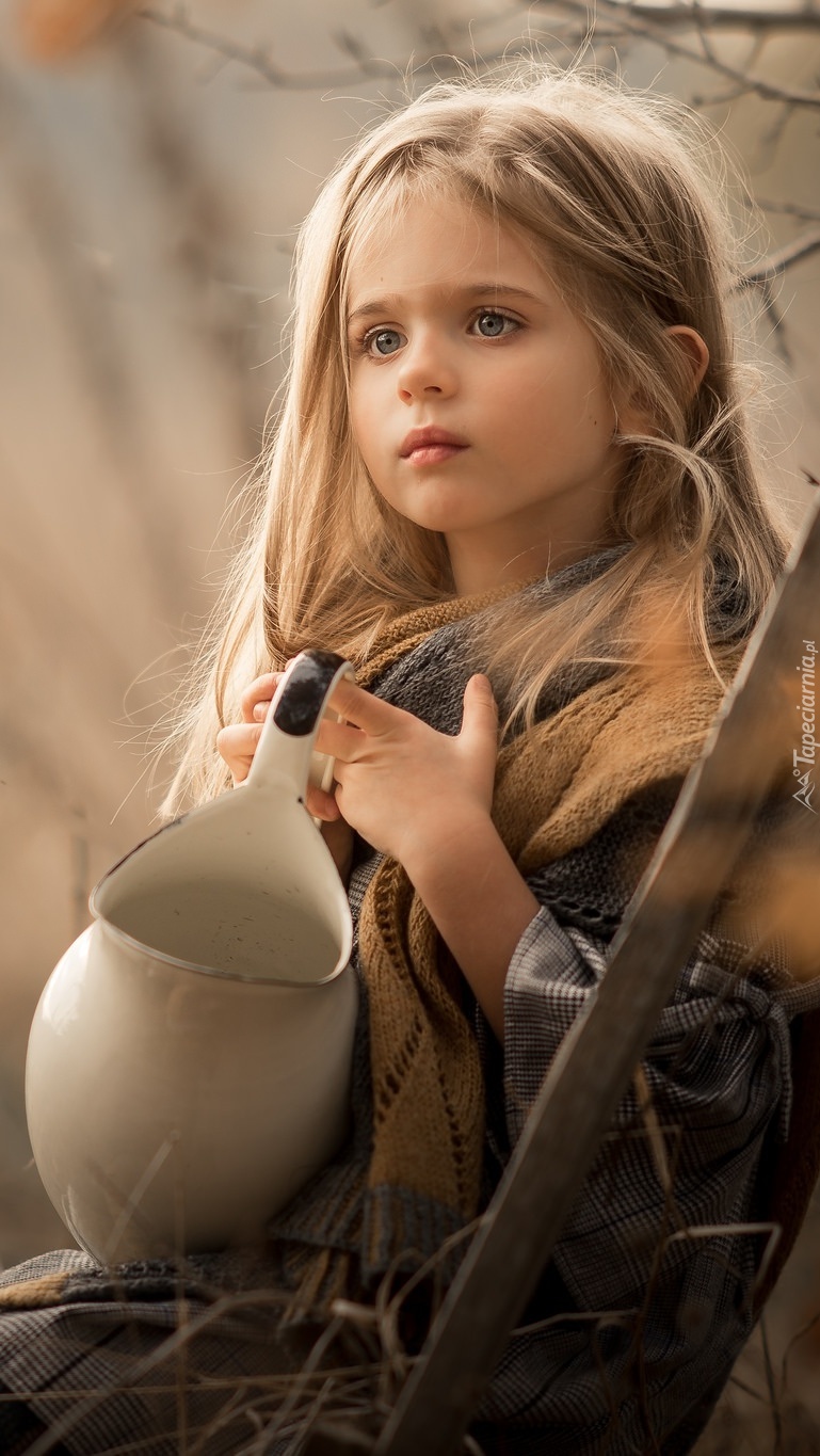 Edytor tapety: Zamyślona dziewczynka trzymająca dzban