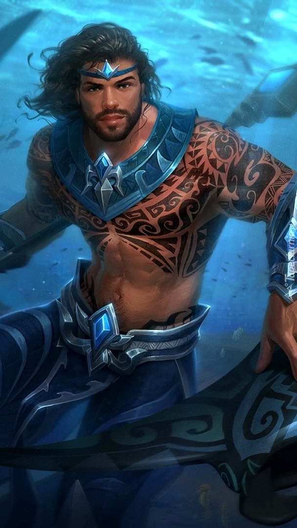 Edytor tapety: Wytatuowany Posejdon z gry Smite