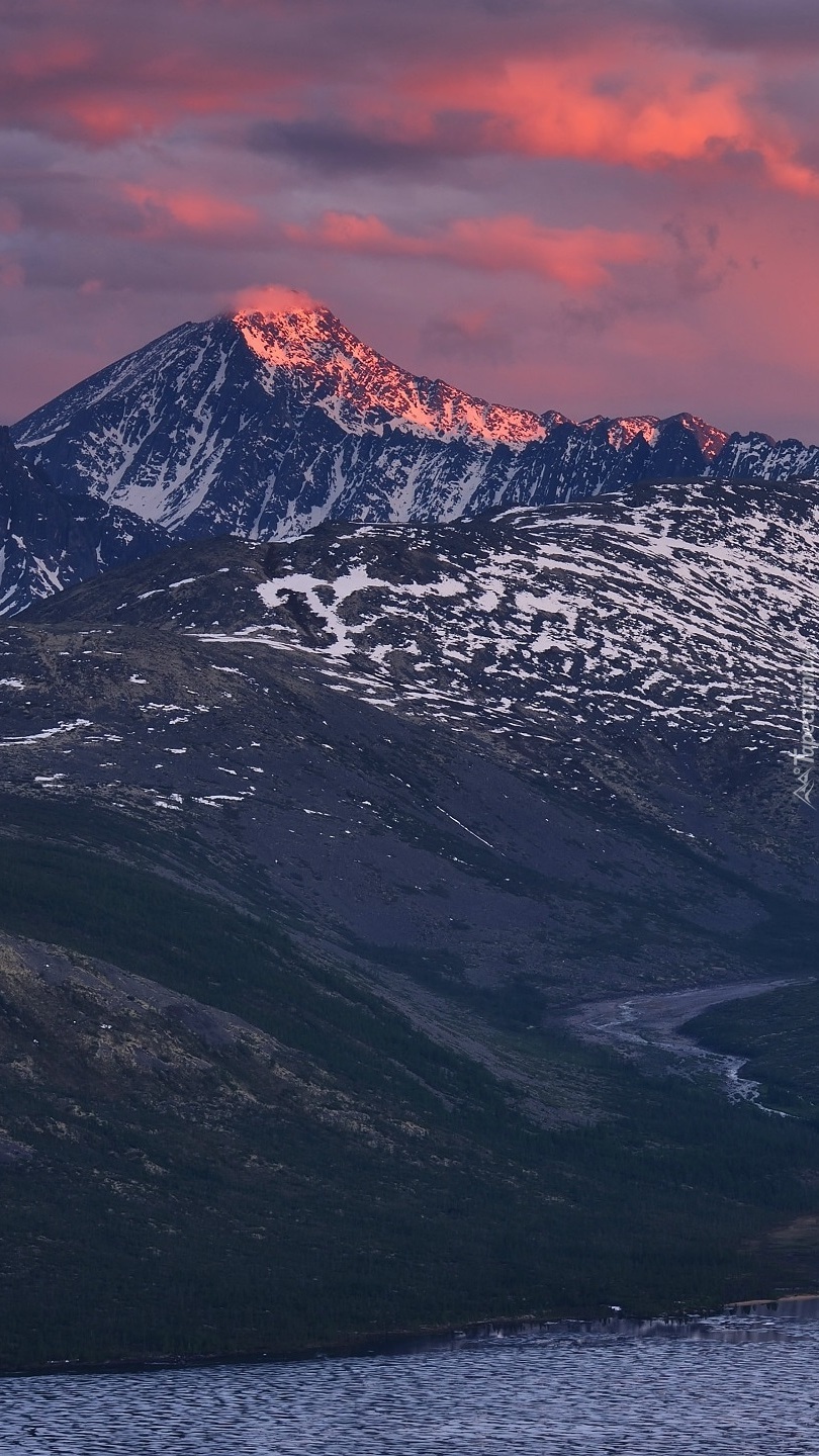 Edytor tapety: Różowe niebo nad szczytem góry