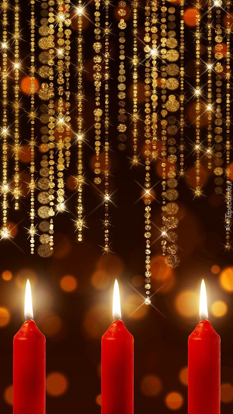 Edytor tapety: Czerwone świece pod złotymi kryształkami