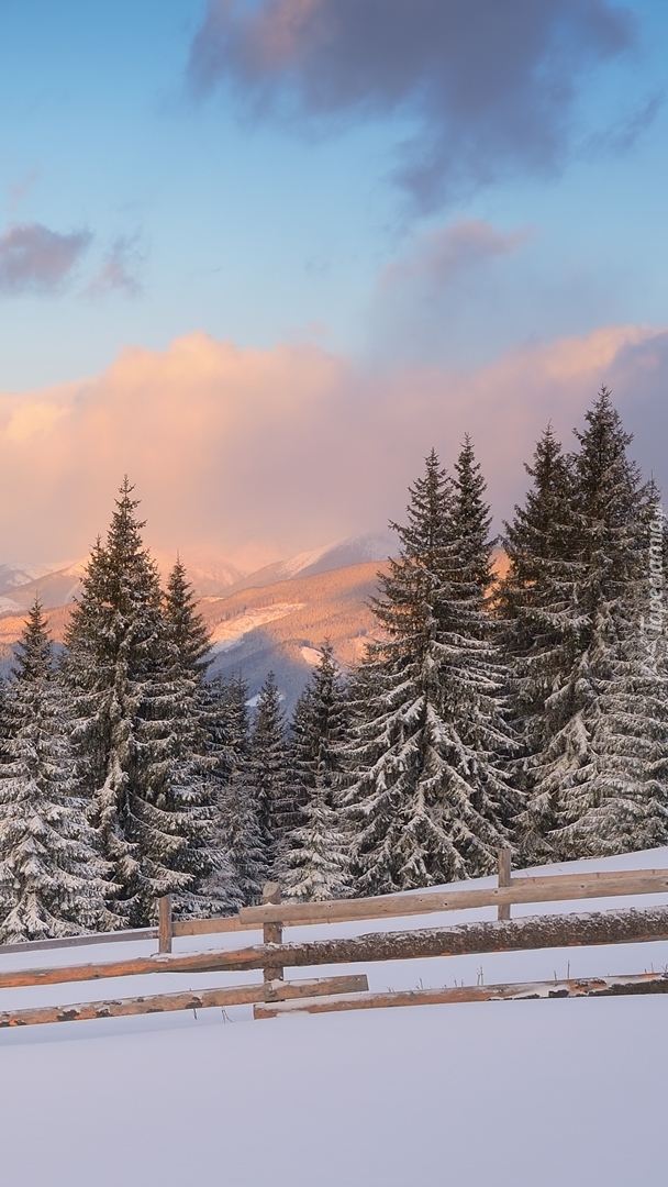 Edytor tapety: Drzewa za ogrodzeniem