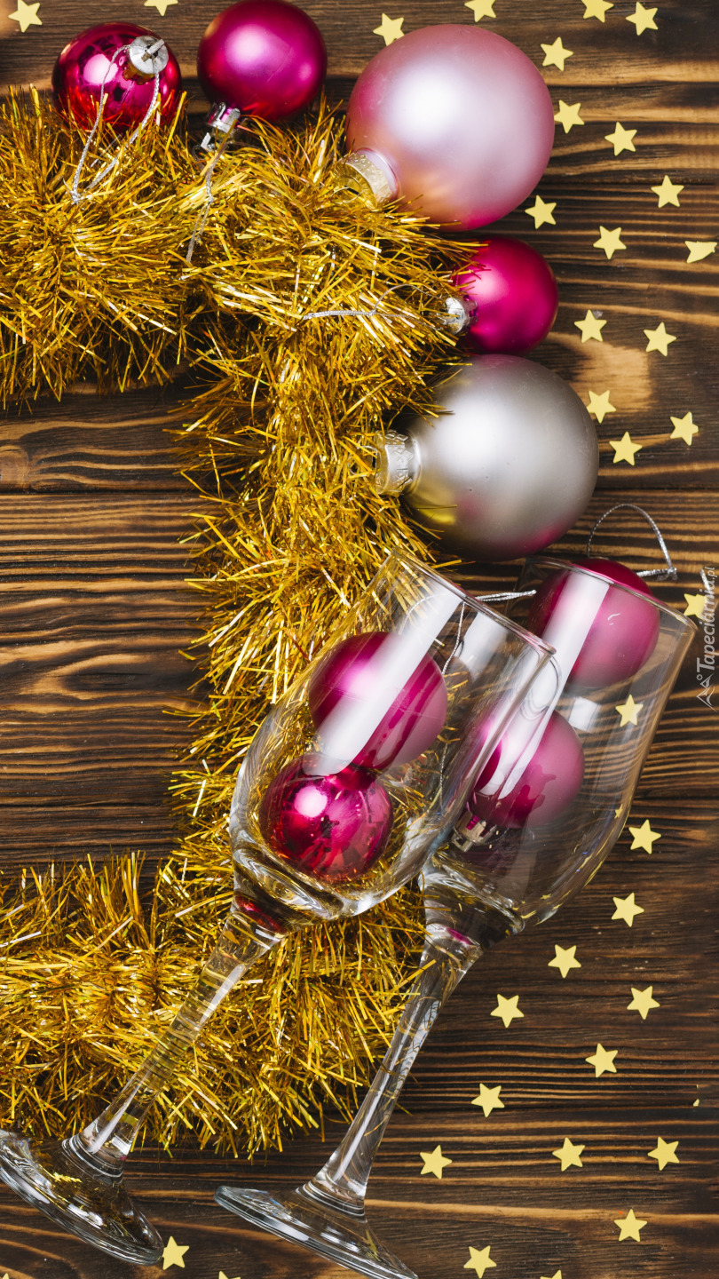 Edytor tapety: Kieliszki i bombki obok lamety