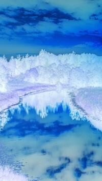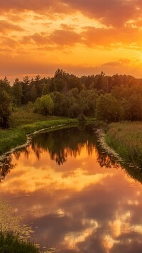 Edytor tapety: Widok na rzekę i drzewa o zachodzie słońca