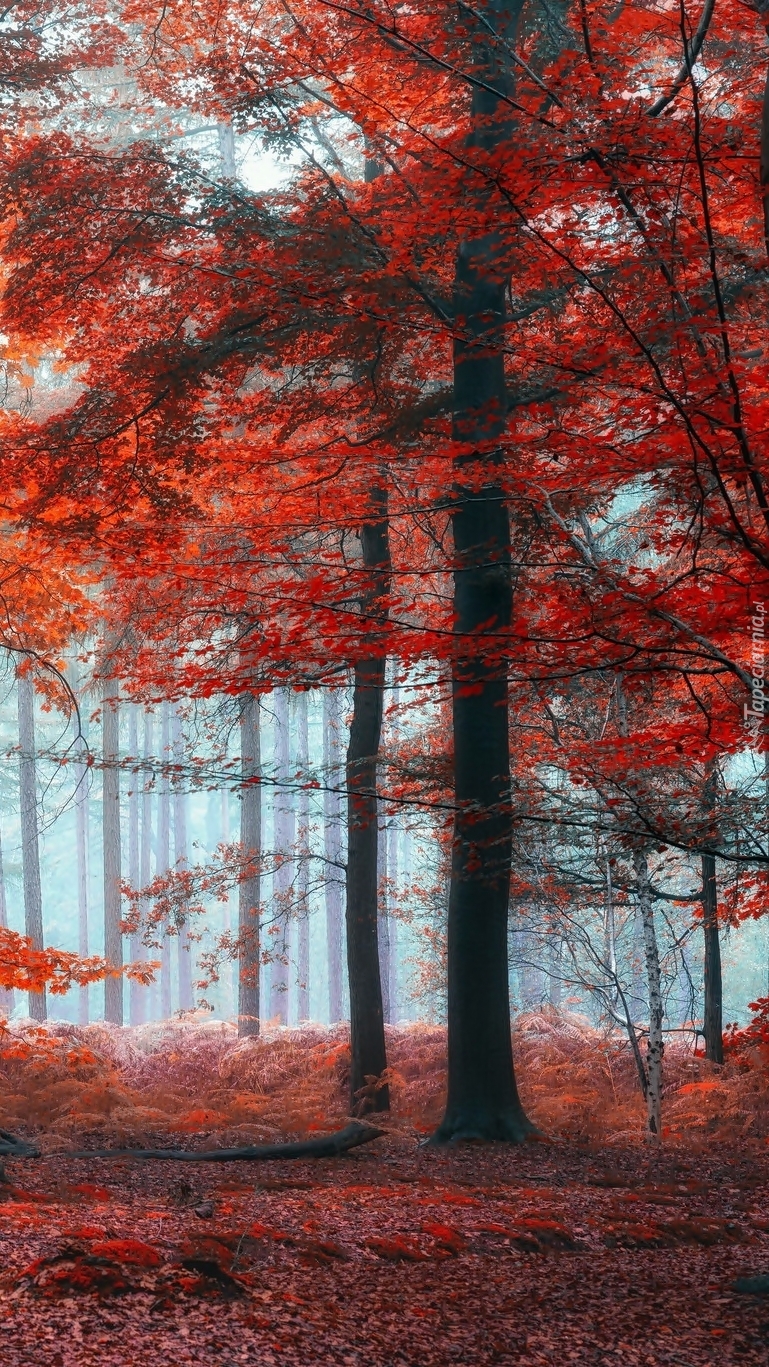 Edytor tapety: Drzewa z czerwonymi liśćmi