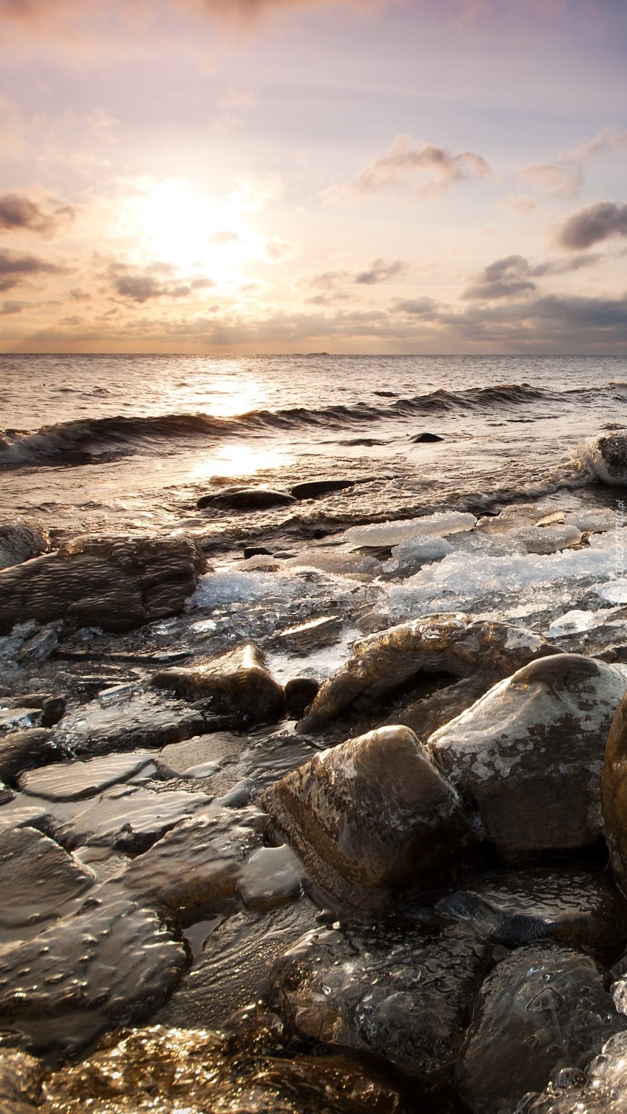 Edytor tapety: Morskie fale uderzają o kamienie