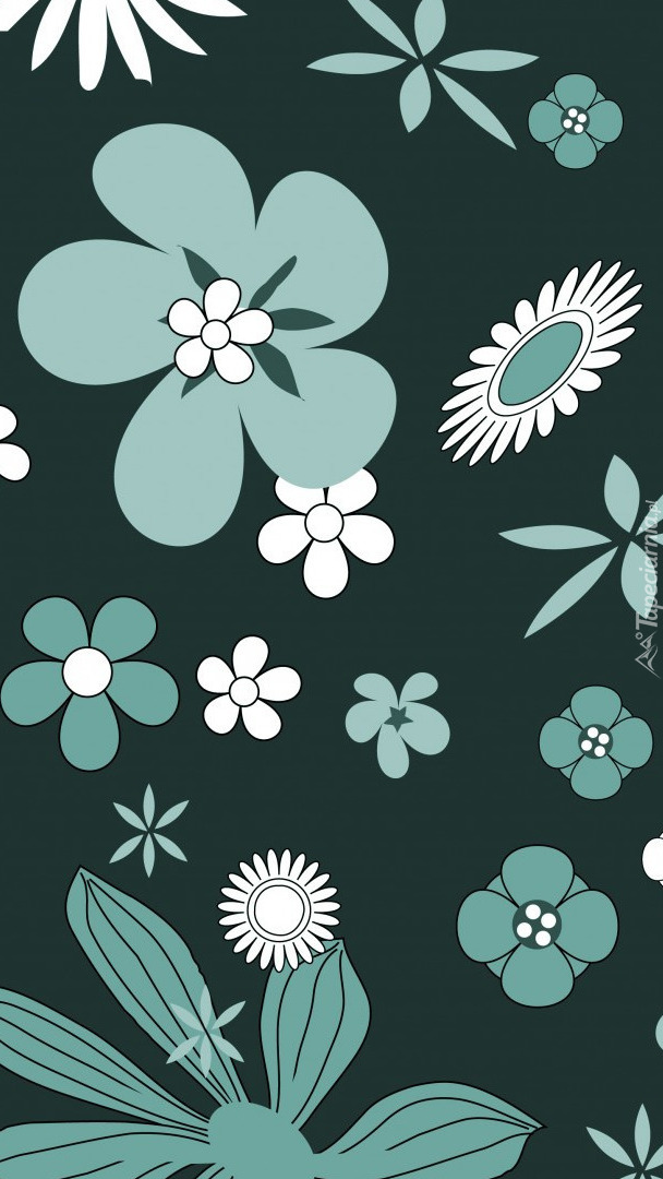 Edytor tapety: Białe i zielone kwiatki w 2D