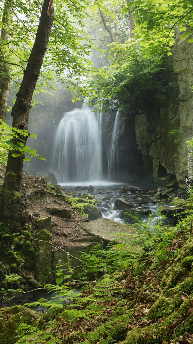 Edytor tapety: Wodospad Lumsdale Falls wśród zieleni