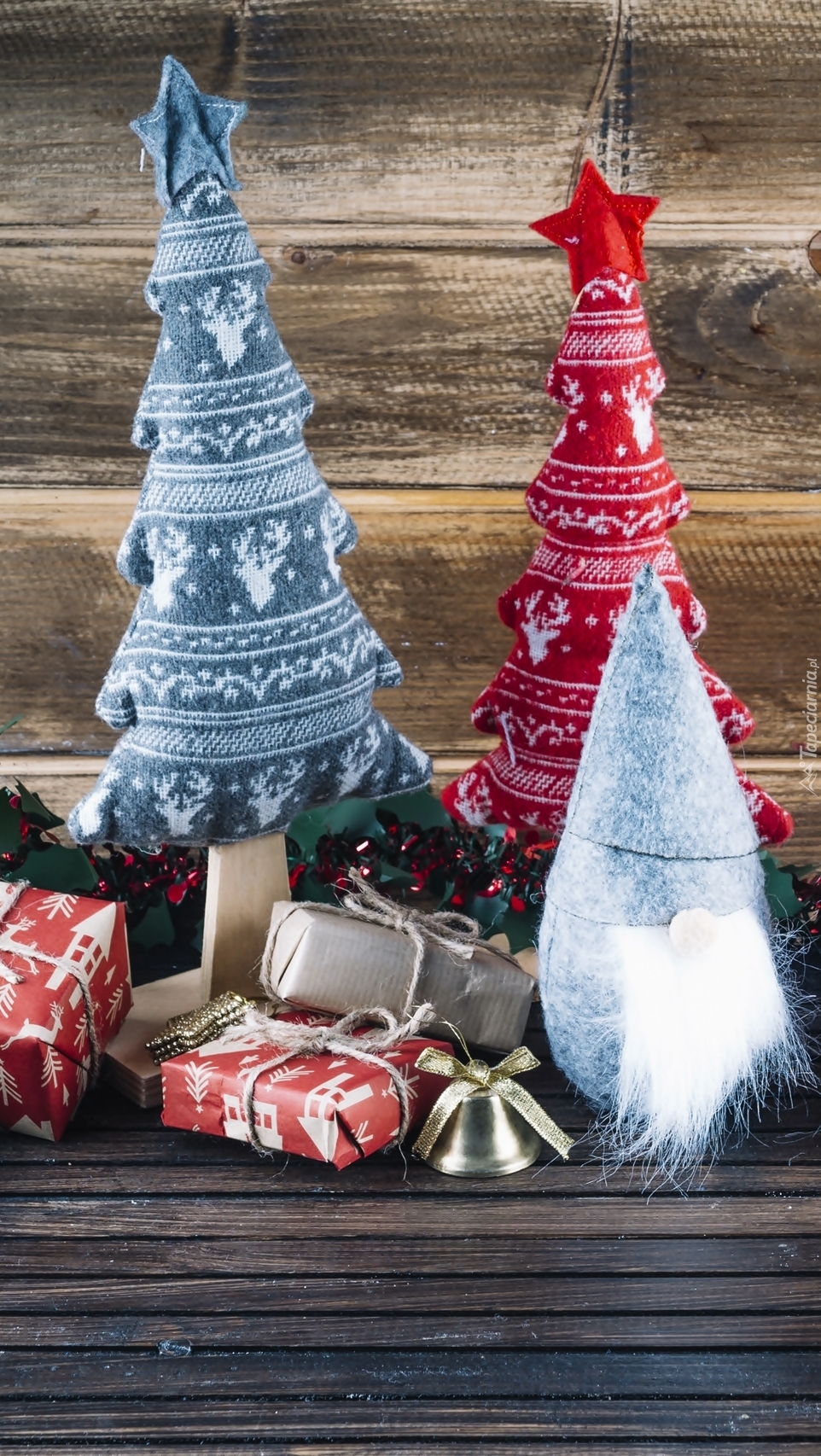 Edytor tapety: Skrzat przy materiałowych choinkach