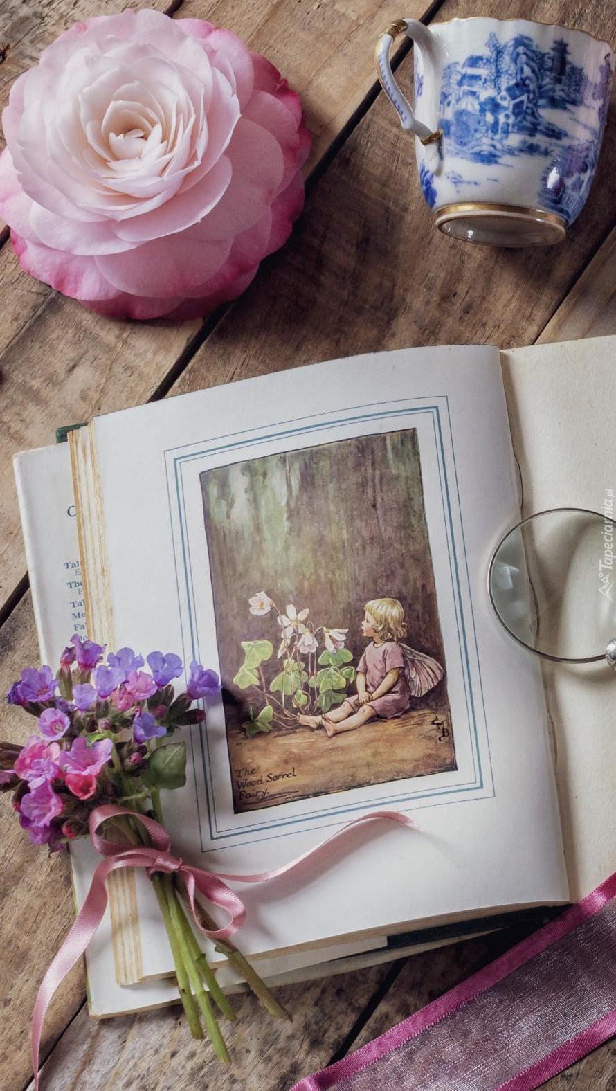 Edytor tapety: Bukiecik kwiatów na otwartej książce