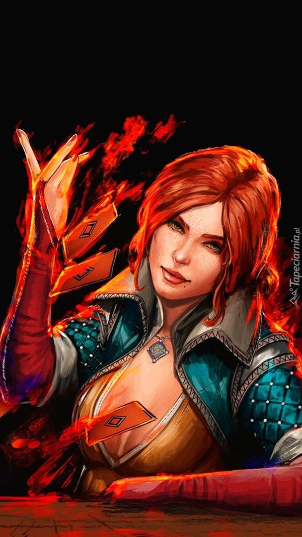 Edytor tapety: Triss Merigold z płonącymi kartami