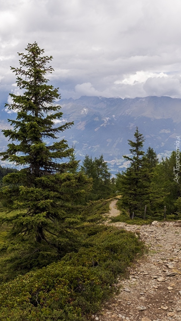 Edytor tapety: Kamienista ścieżka wśród drzew