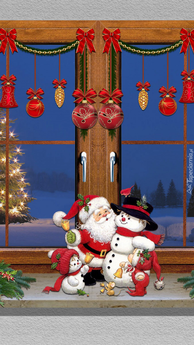 Edytor tapety: Mikołaj z bałwankiem na parapecie