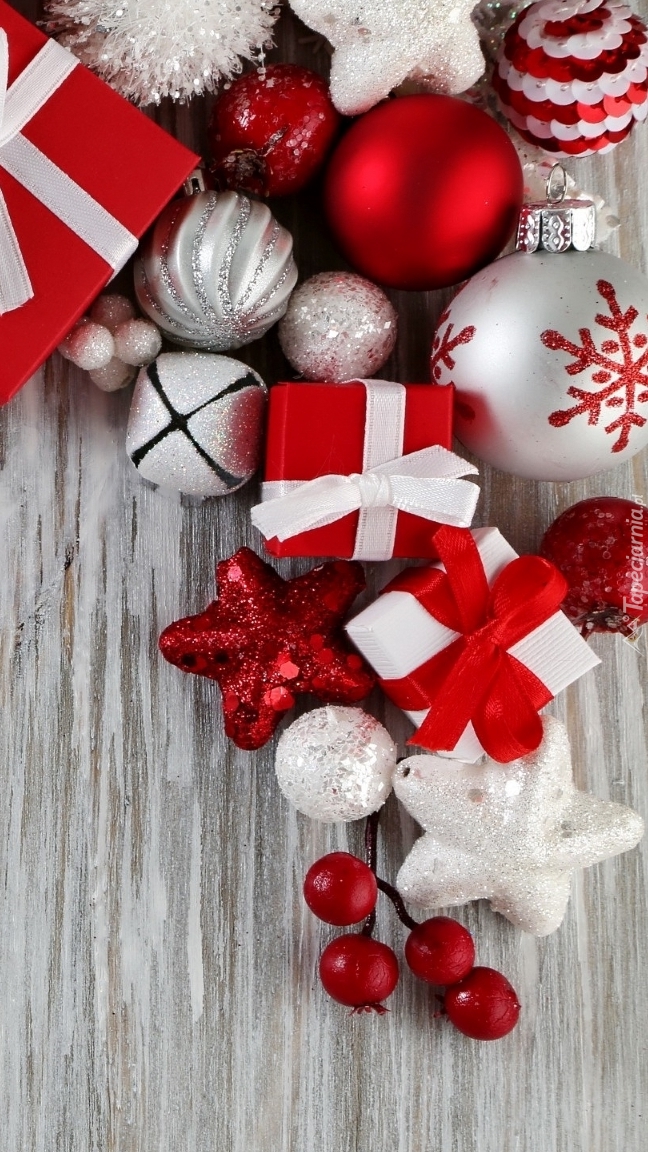 Edytor tapety: Kolorowe ozdoby świąteczne z prezentami