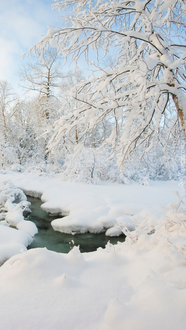 Edytor tapety: Ośnieżone drzewa nad rzeką