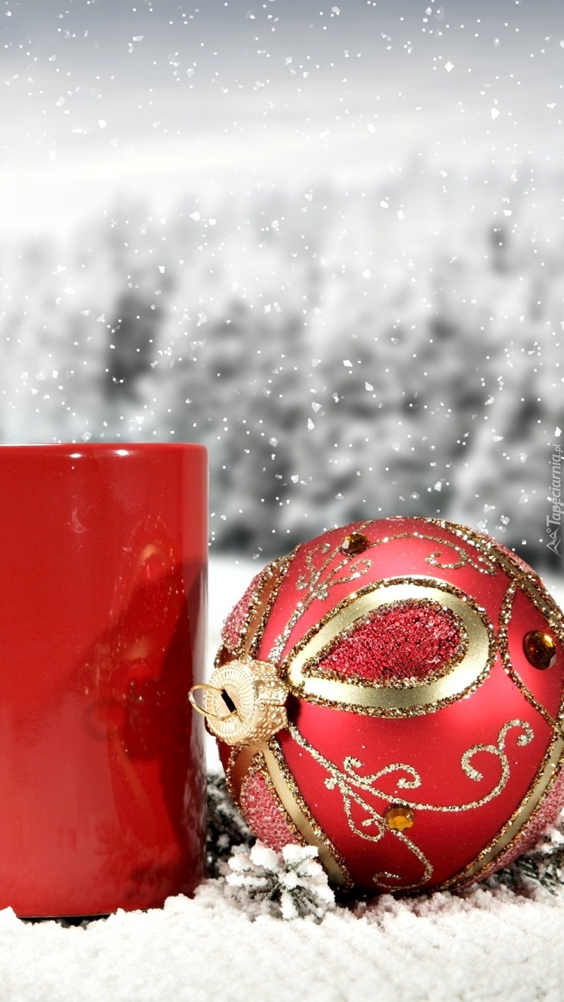 Edytor tapety: Czerwona bombka zdobiona złotem