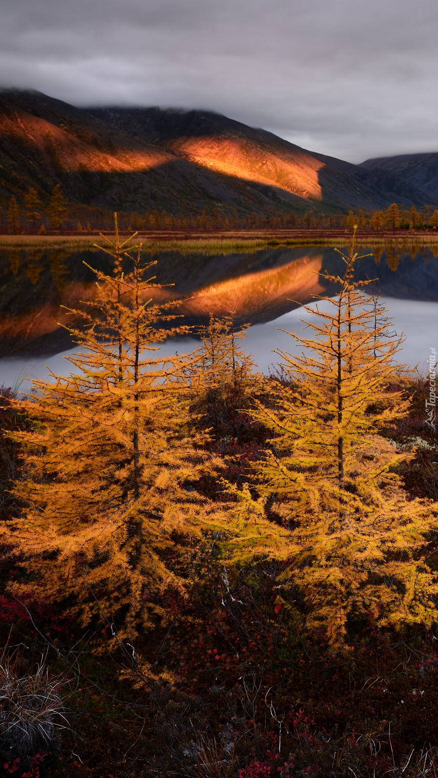 Edytor tapety: Drzewa nad jeziorem Jack London