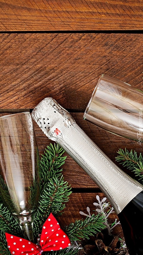 Edytor tapety: Szampan z kieliszkami i zielonymi gałązkami