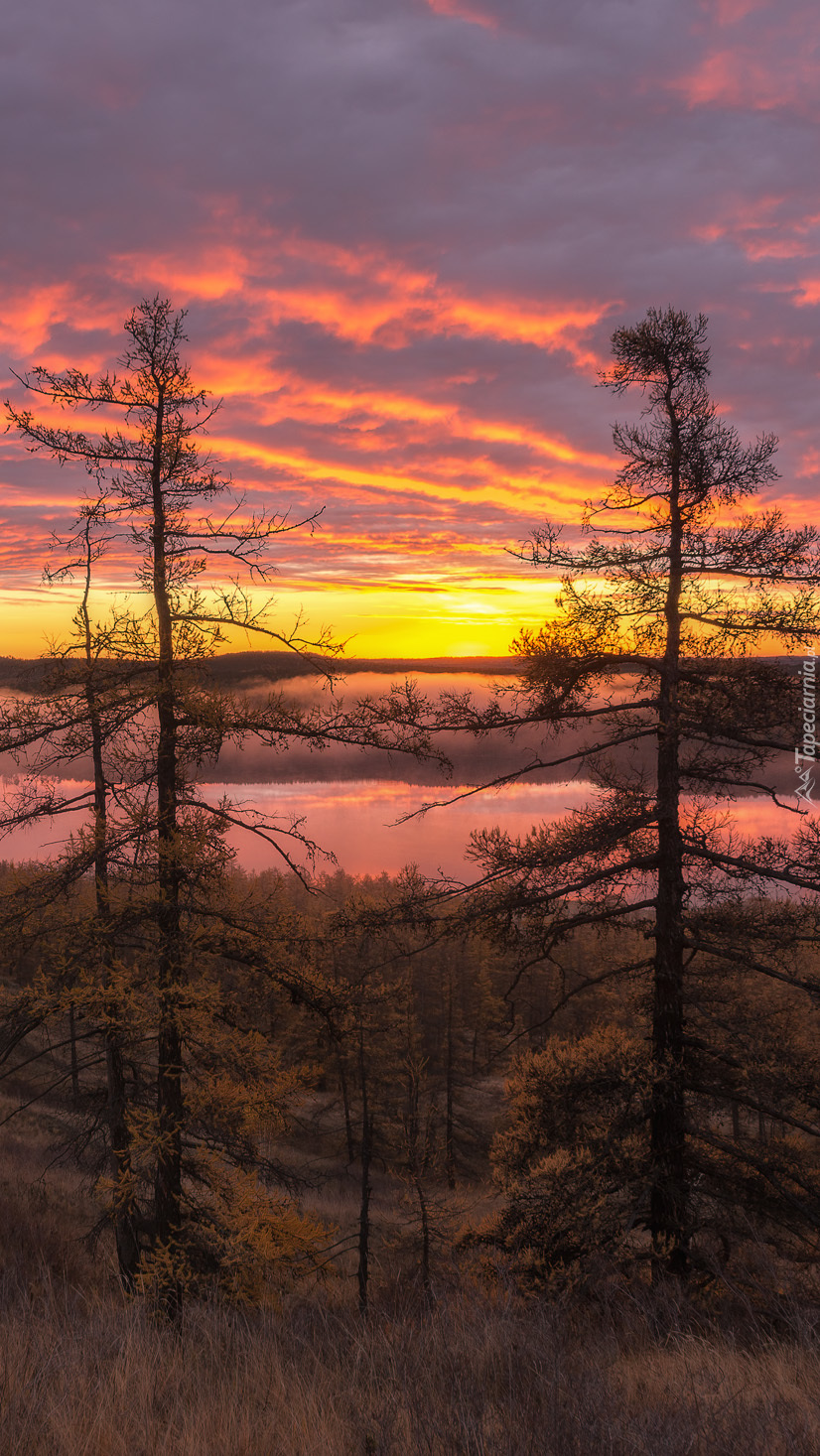 Edytor tapety: Kolorowe niebo nad jeziorem