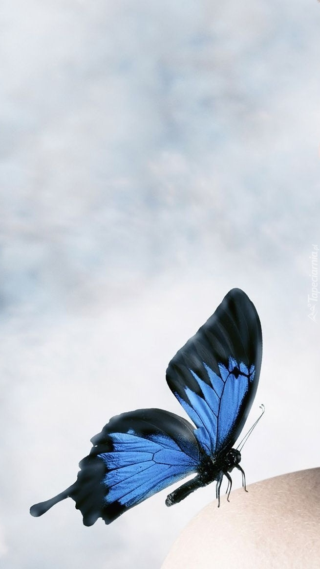 Edytor tapety: Niebieski motyl na tle niebieskiego nieba