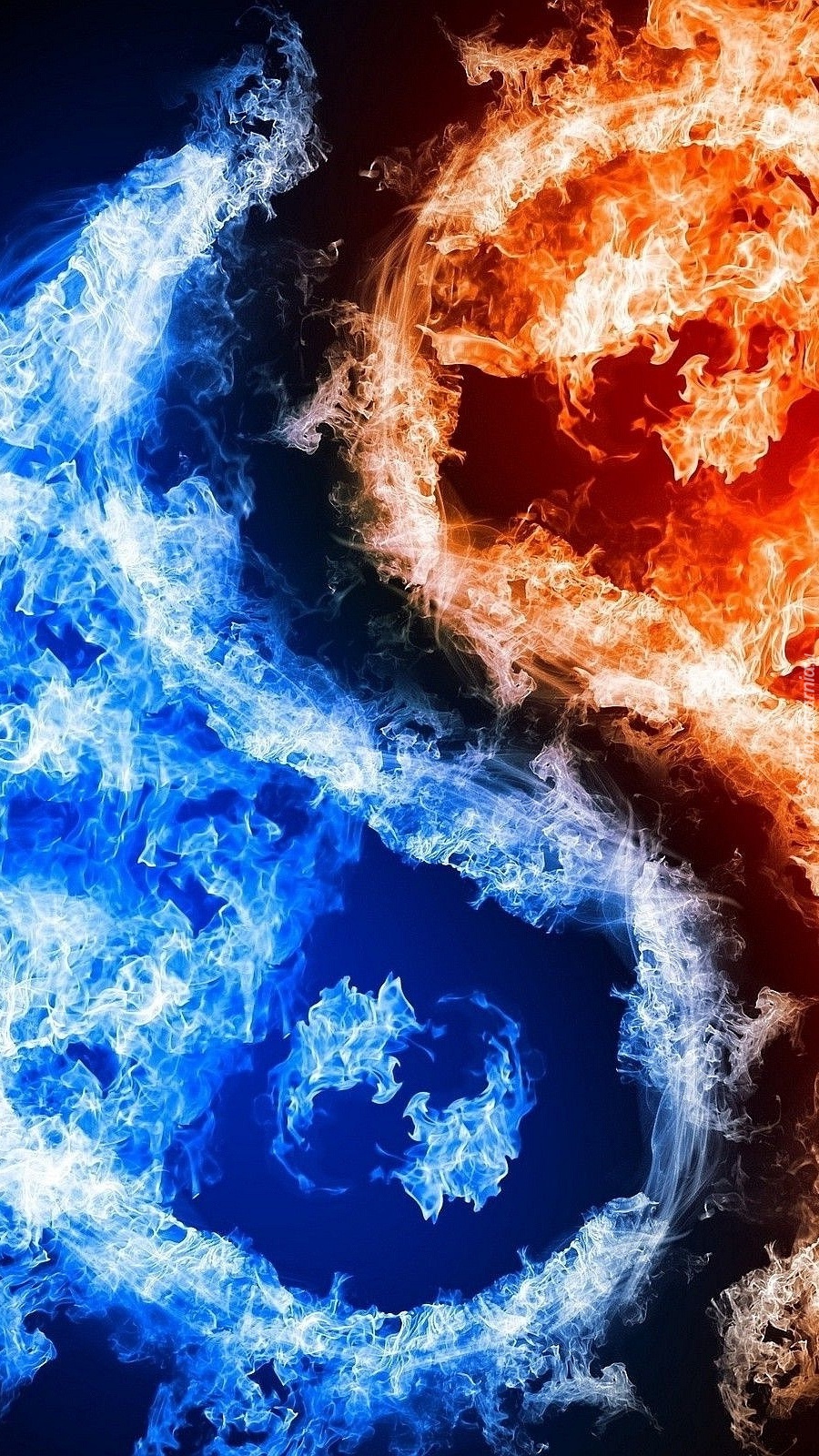 Edytor tapety: Abstrakcja z ogniem i wodą