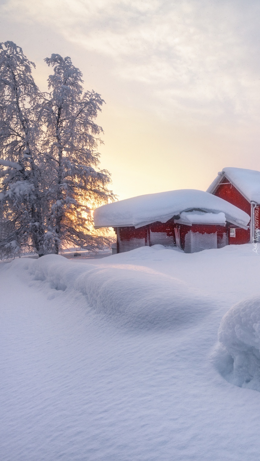 Edytor tapety: Zaśnieżony czerwony domek