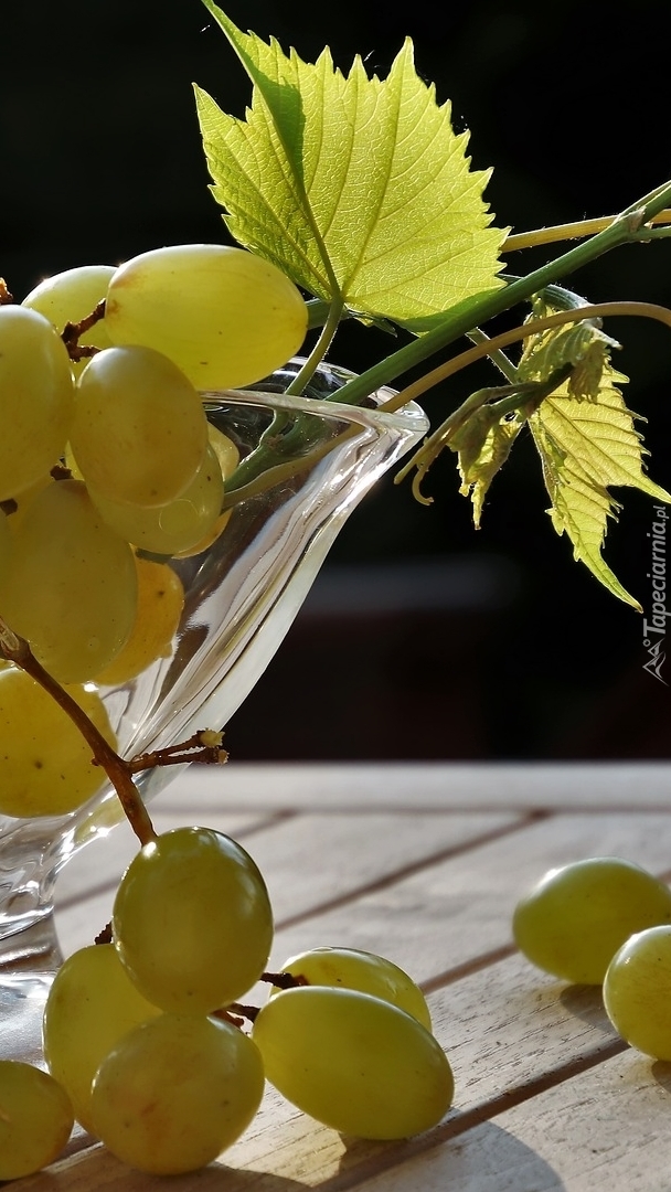 Edytor tapety: Kiście winogron z liśćmi