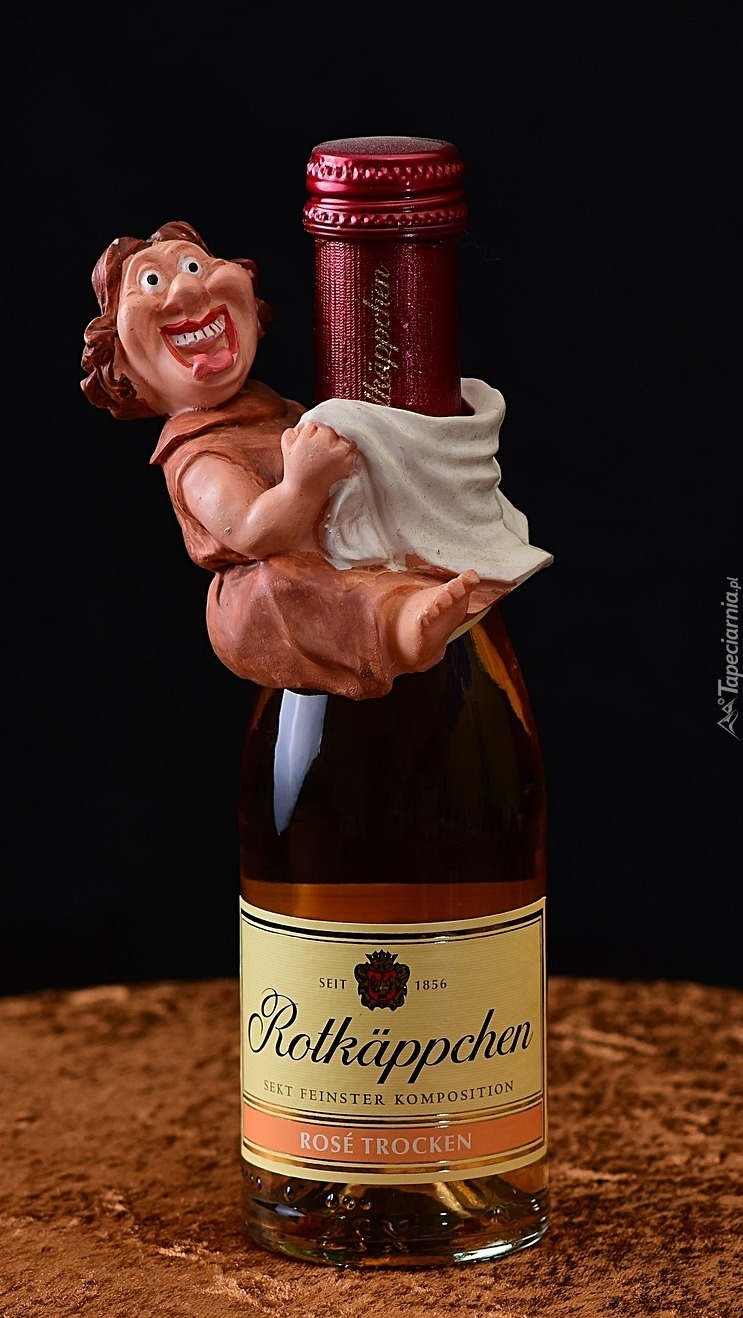 Edytor tapety: Butelka wina z figurką kobiety