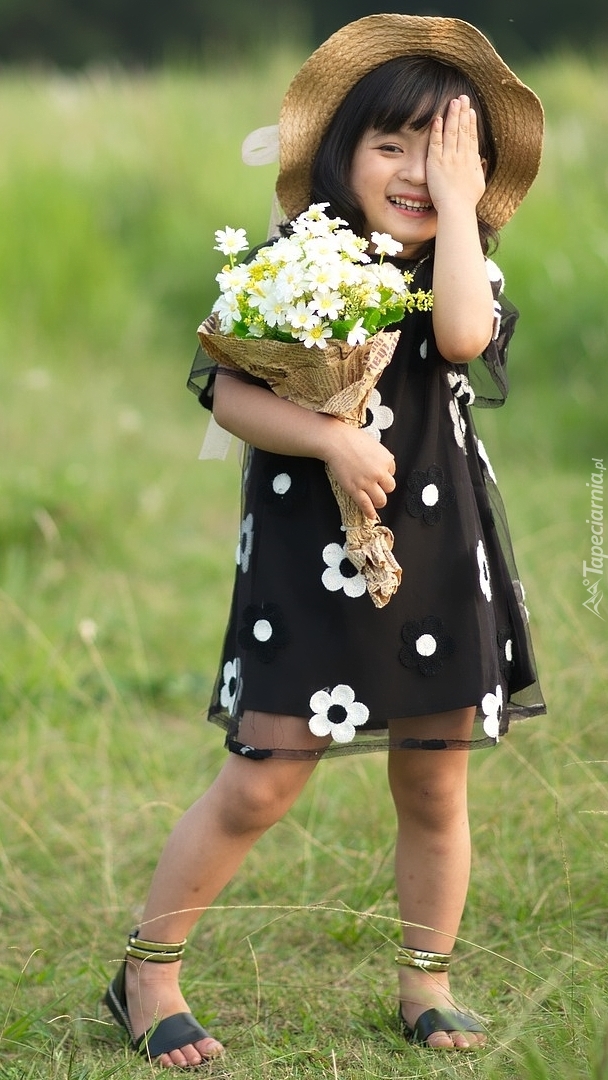 Edytor tapety: Dziewczynka z bukietem kwiatów