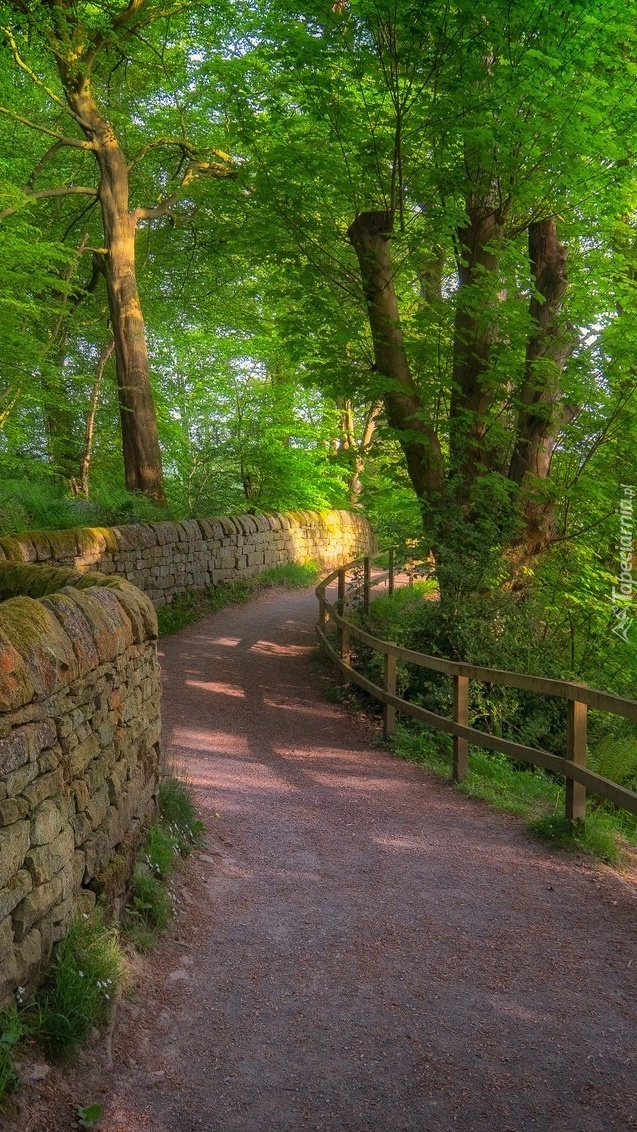 Edytor tapety: Kamienny mur wzdłuż drogi
