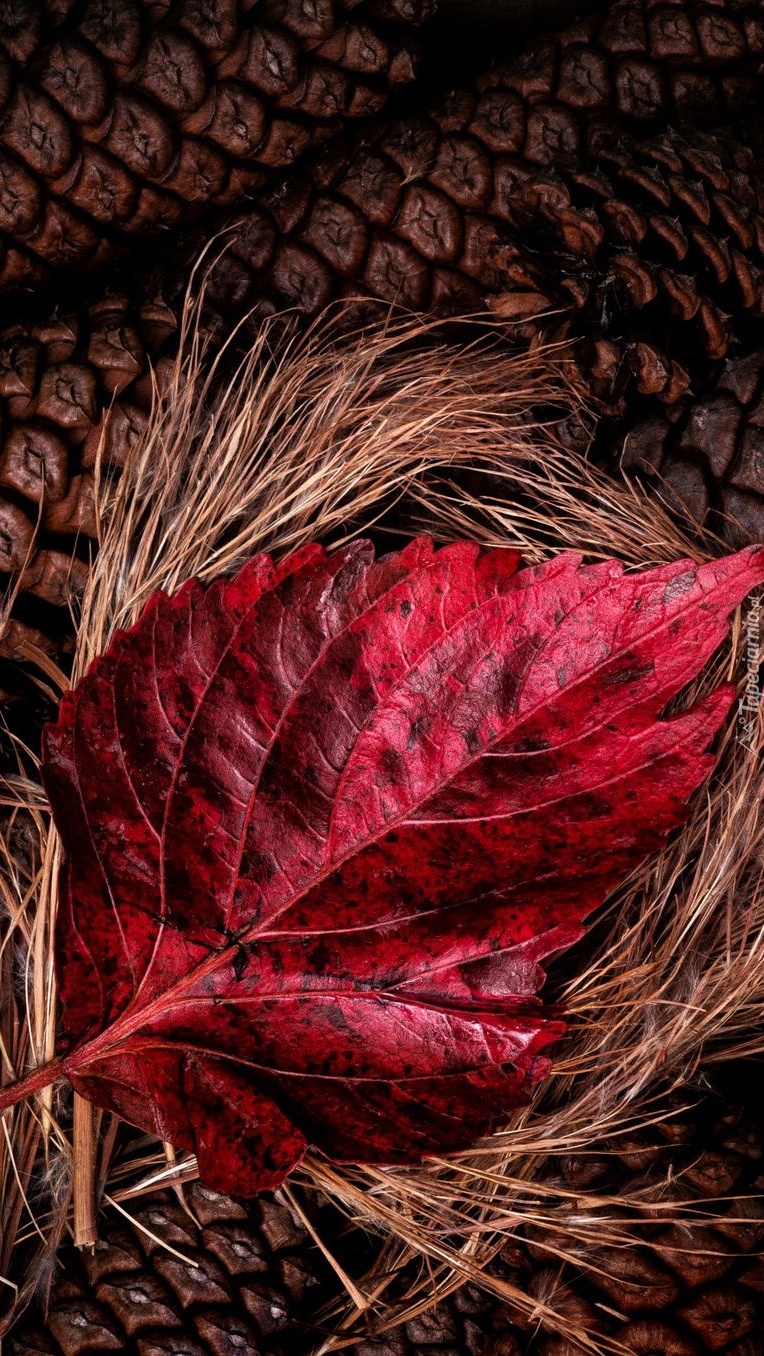 Edytor tapety: Szyszki i liście pamiątki jesieni