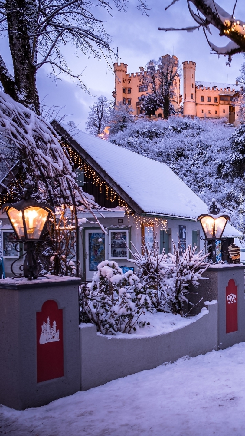 Edytor tapety: Zamek Hehenschwangau na wzgórzu