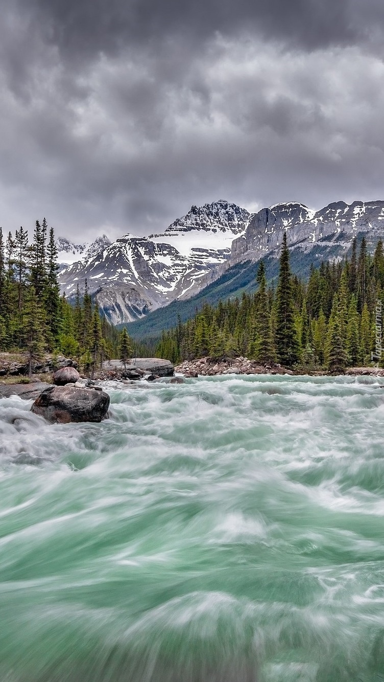 Edytor tapety: Rwąca leśna rzeka w górach