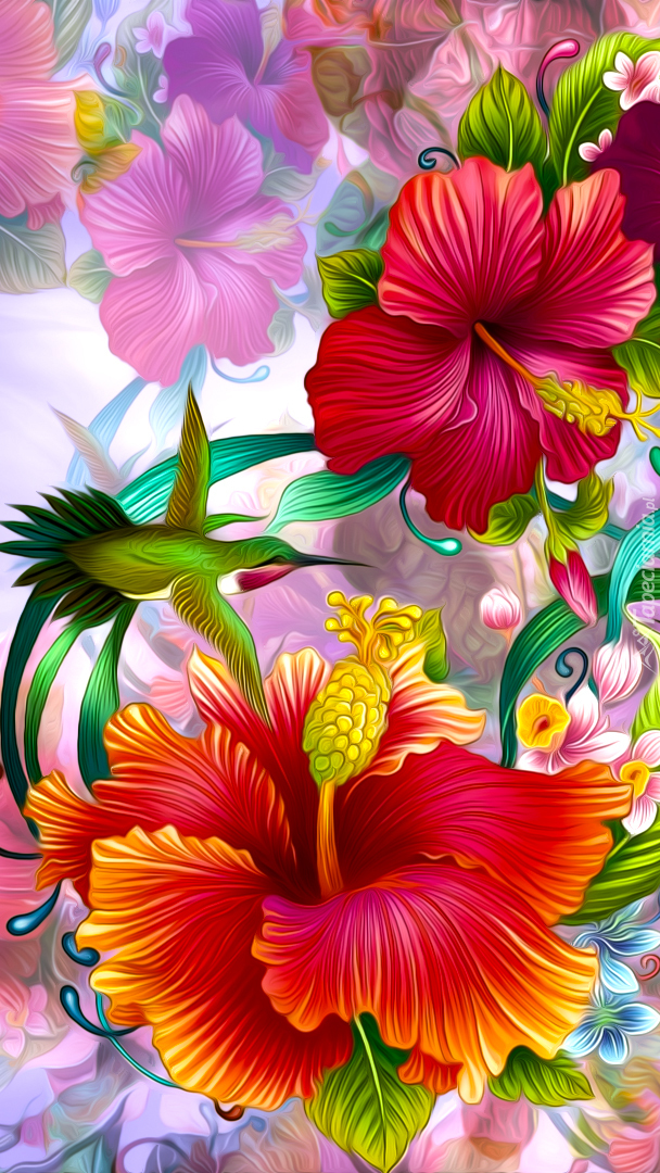 Edytor tapety: Kwiaty hibiskusa w grafice