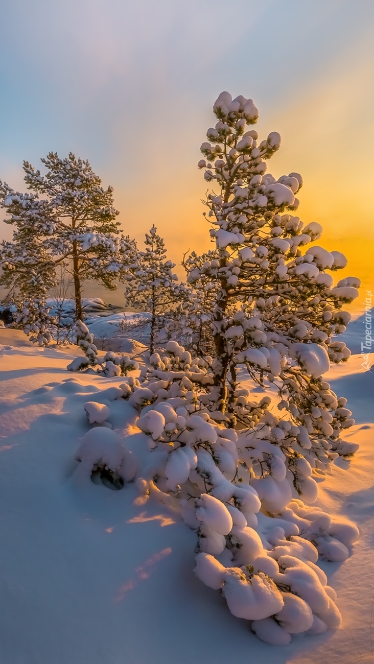 Edytor tapety: Ośnieżone drzewa o poranku