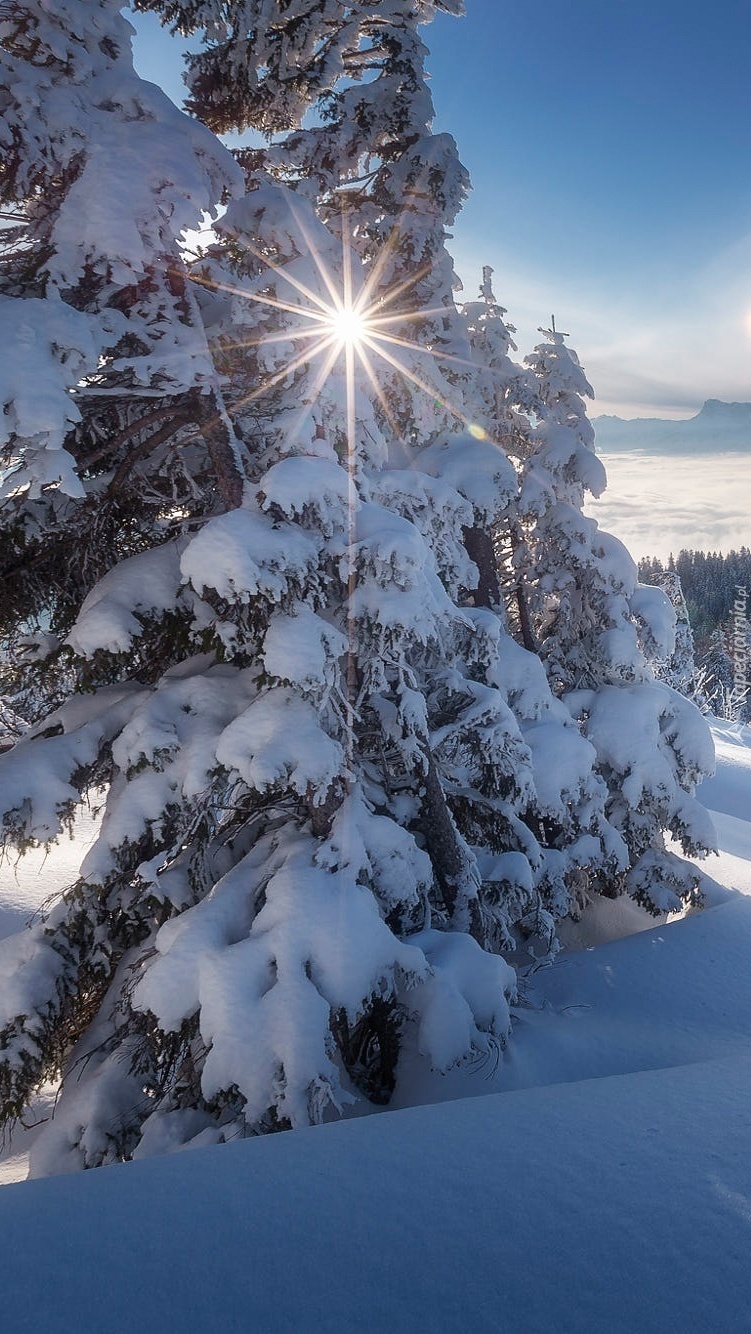 Edytor tapety: Promienie słońca między gałęziami drzew