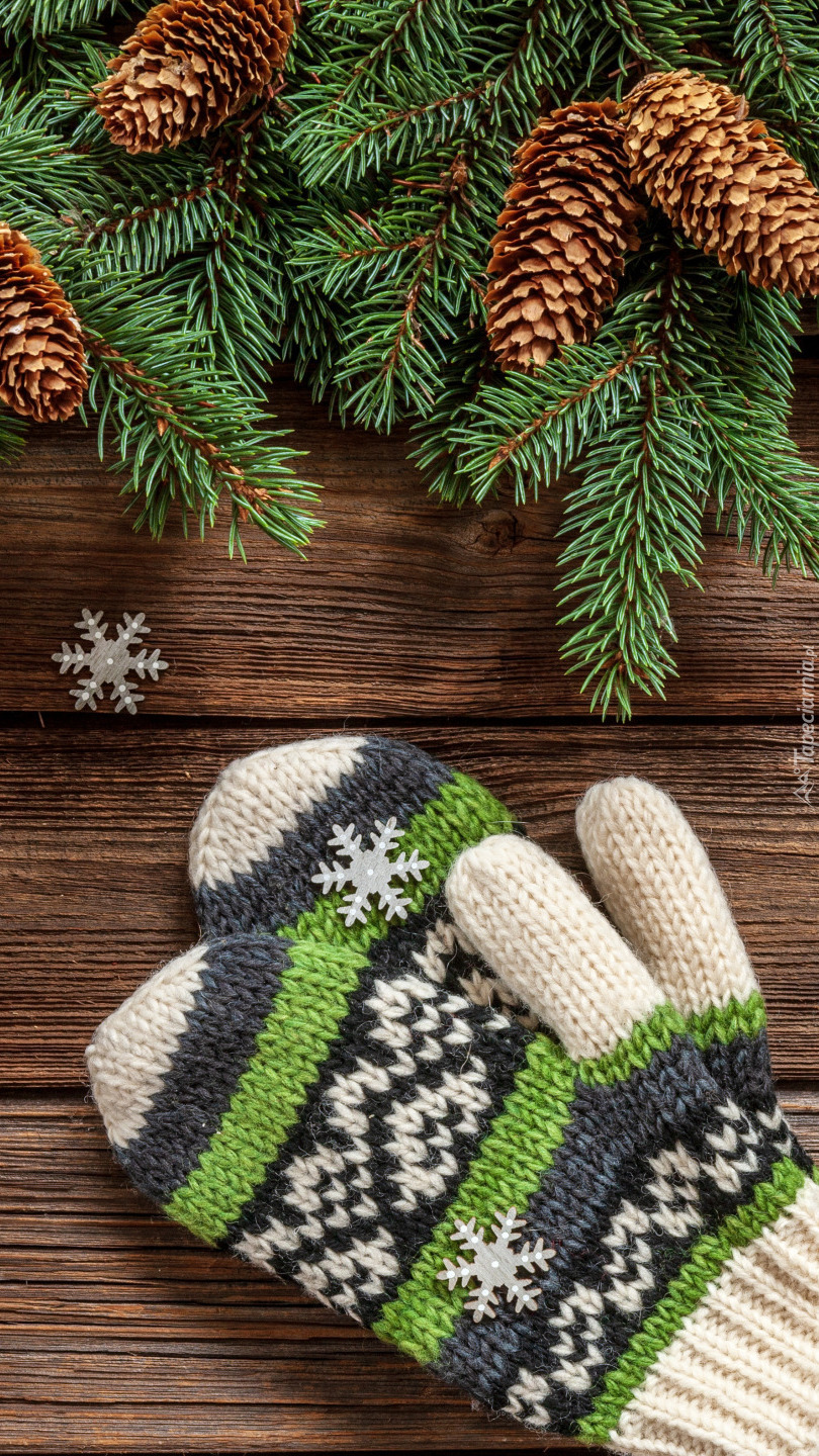 Edytor tapety: Rękawiczki wełniane przy gałązkach