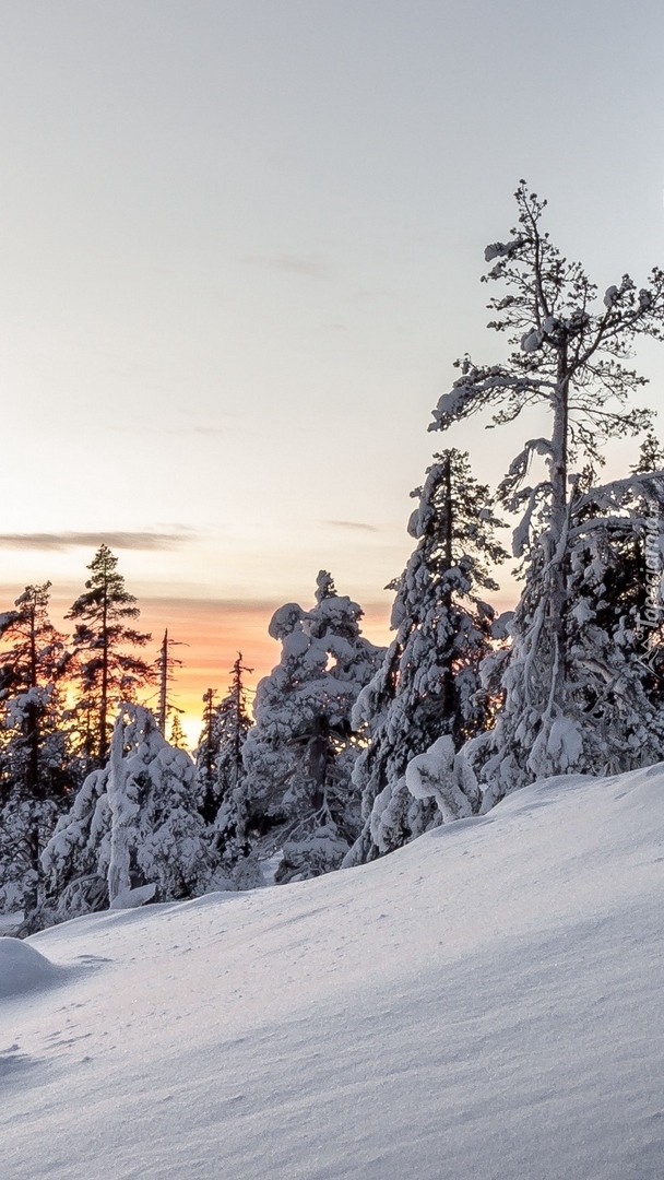 Edytor tapety: Ośnieżony stok z drzewami