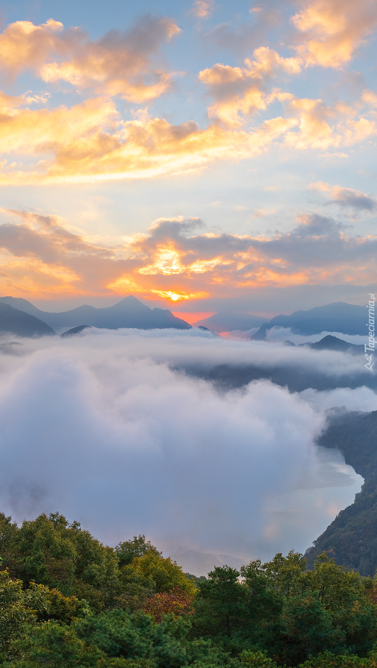 Edytor tapety: Widok z gór na zamgloną dolinę