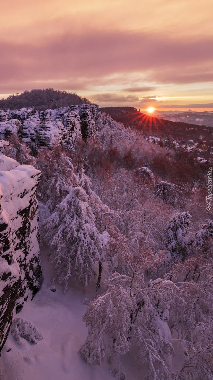 Edytor tapety: Zachodzące słońce za górami