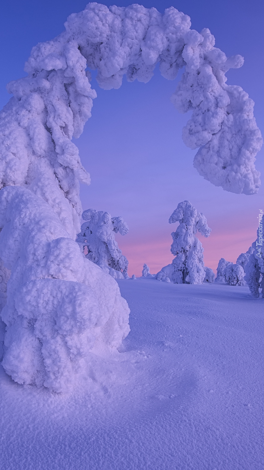 Edytor tapety: Pochylone ośnieżone drzewo