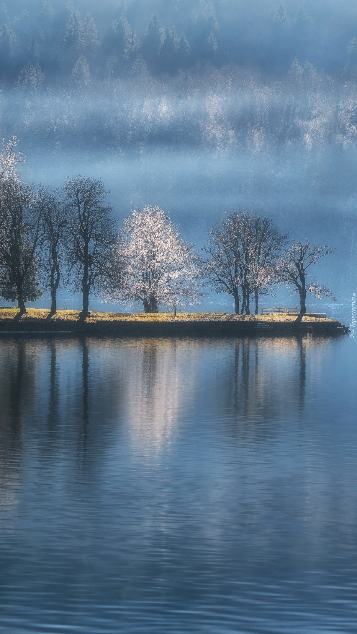 Edytor tapety: Drzewa nad jeziorem Bohinj