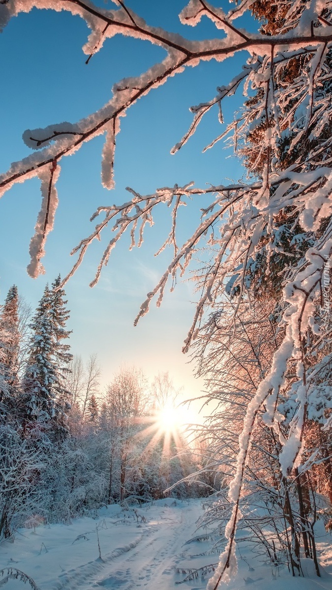Edytor tapety: Gałęzie drzew w promieniach słońca