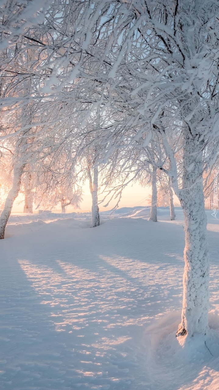 Edytor tapety: Promienie słońca pośród ośnieżonych drzew