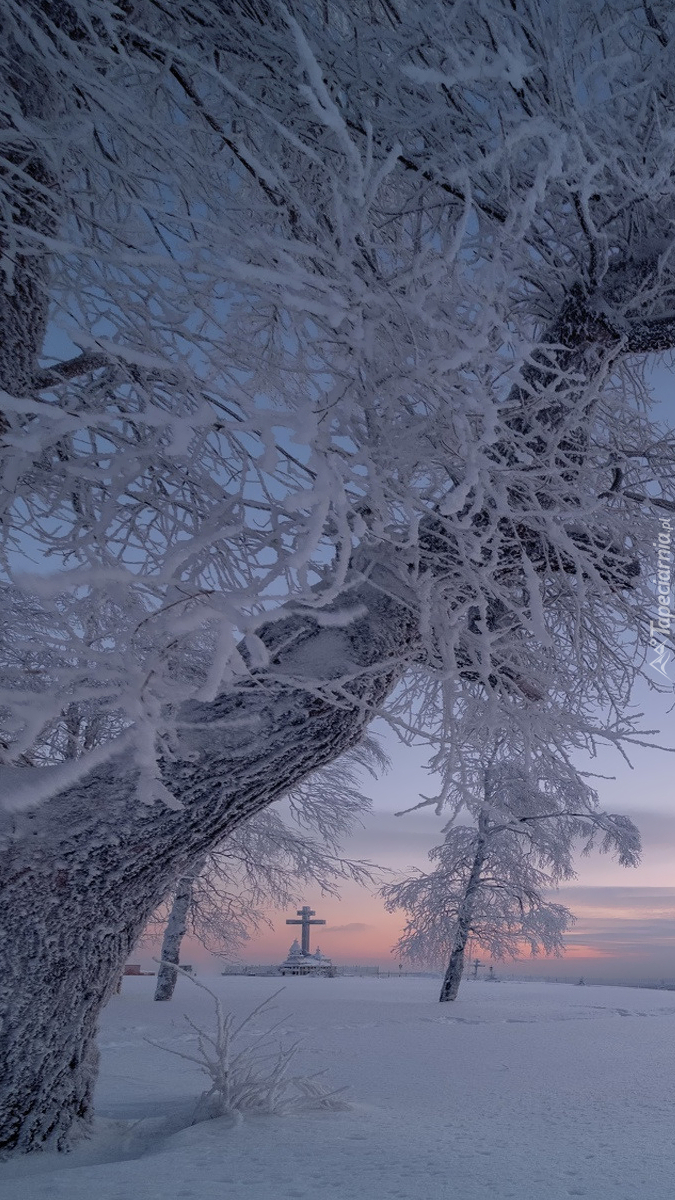 Edytor tapety: Ośnieżone gałęzie drzewa