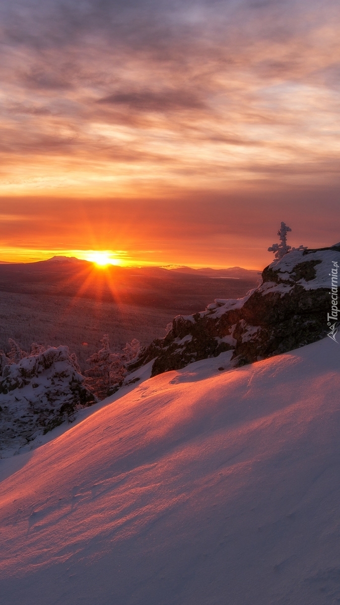 Edytor tapety: Ośnieżone góry w zachodzcym słońcu
