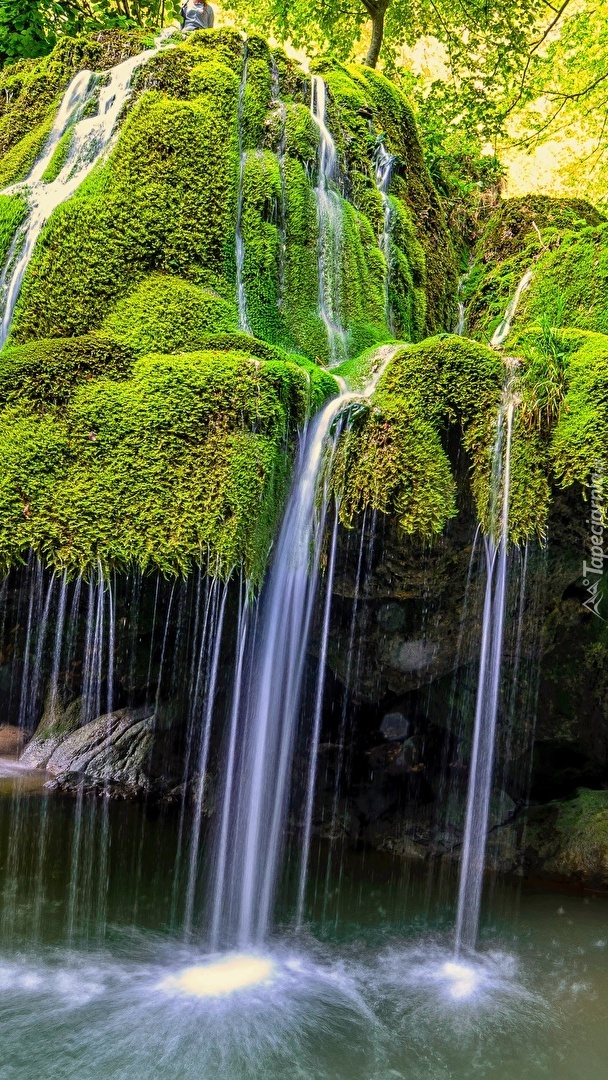 Edytor tapety: Omszała skała z wodospadem