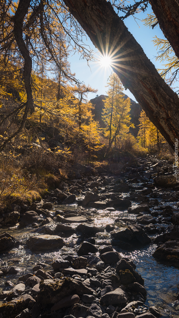 Edytor tapety: Kamienisty strumyk w promieniach słońca