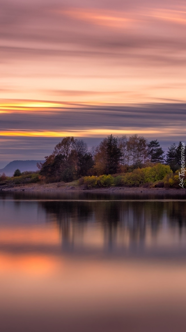Edytor tapety: Kolorowe niebo nad jeziorem