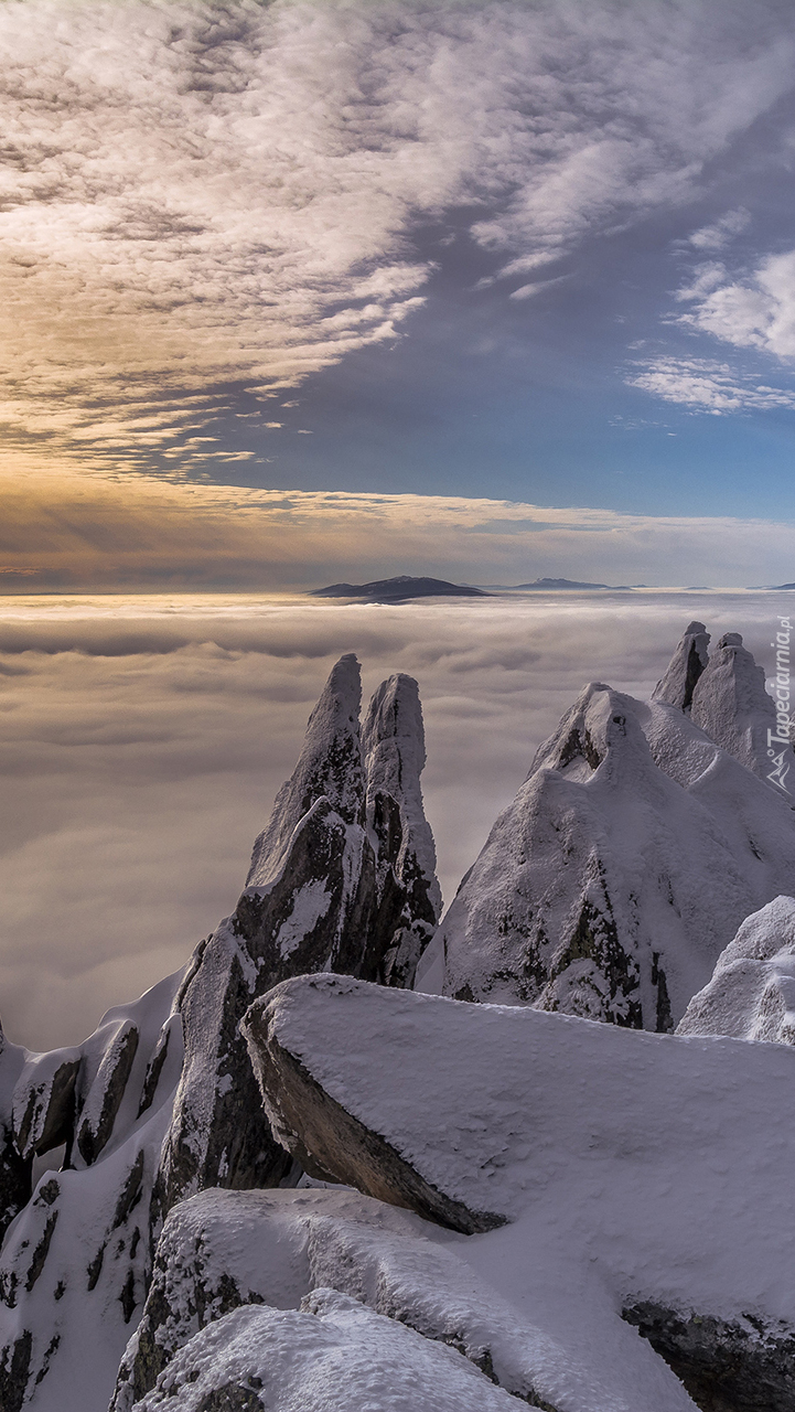 Edytor tapety: Ośnieżone skały na tle nieba