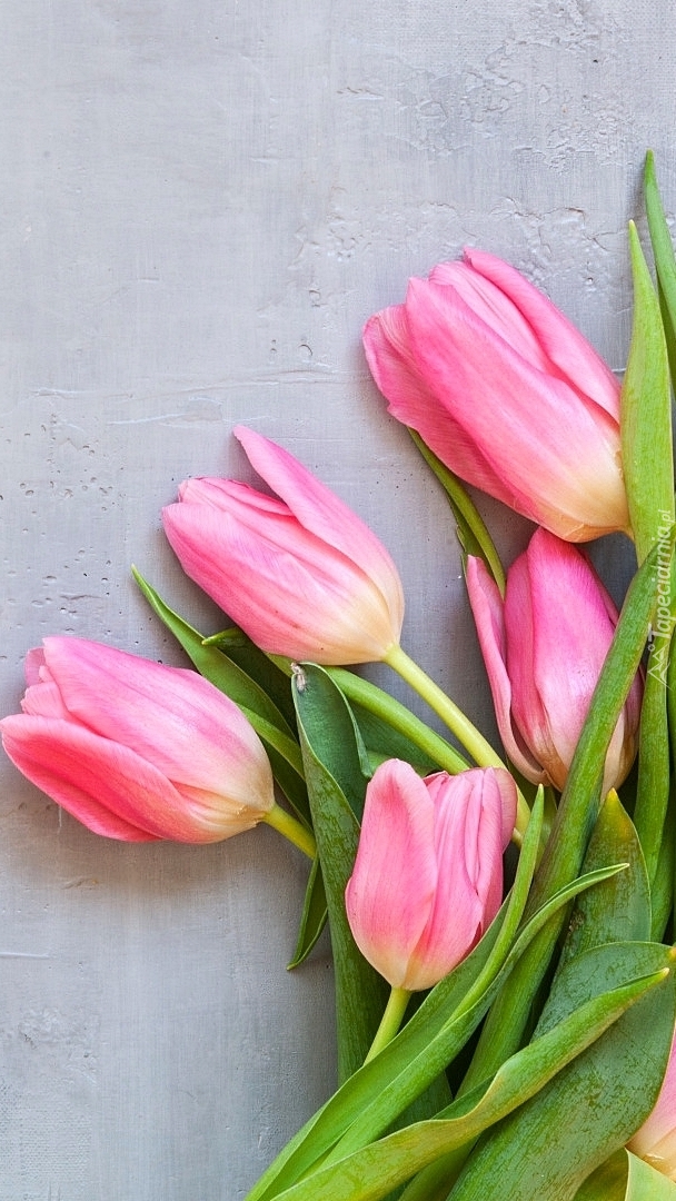 Edytor tapety: Pięć różowych tulipanów
